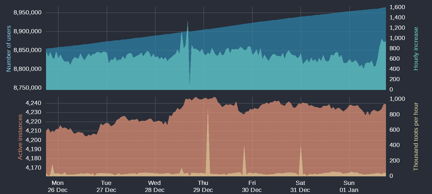 Dane za kontem licznika: https://bitcoinhackers.org/@mastodonusercount/109620442366041229 wczorajsze: https://bitcoinhackers.org/@mastodonusercount/109615251976002964
